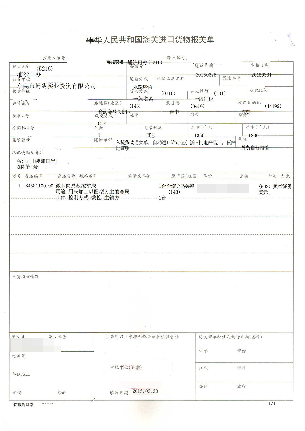 三、數(shù)控車(chē)床進(jìn)口報(bào)關(guān)案例展示