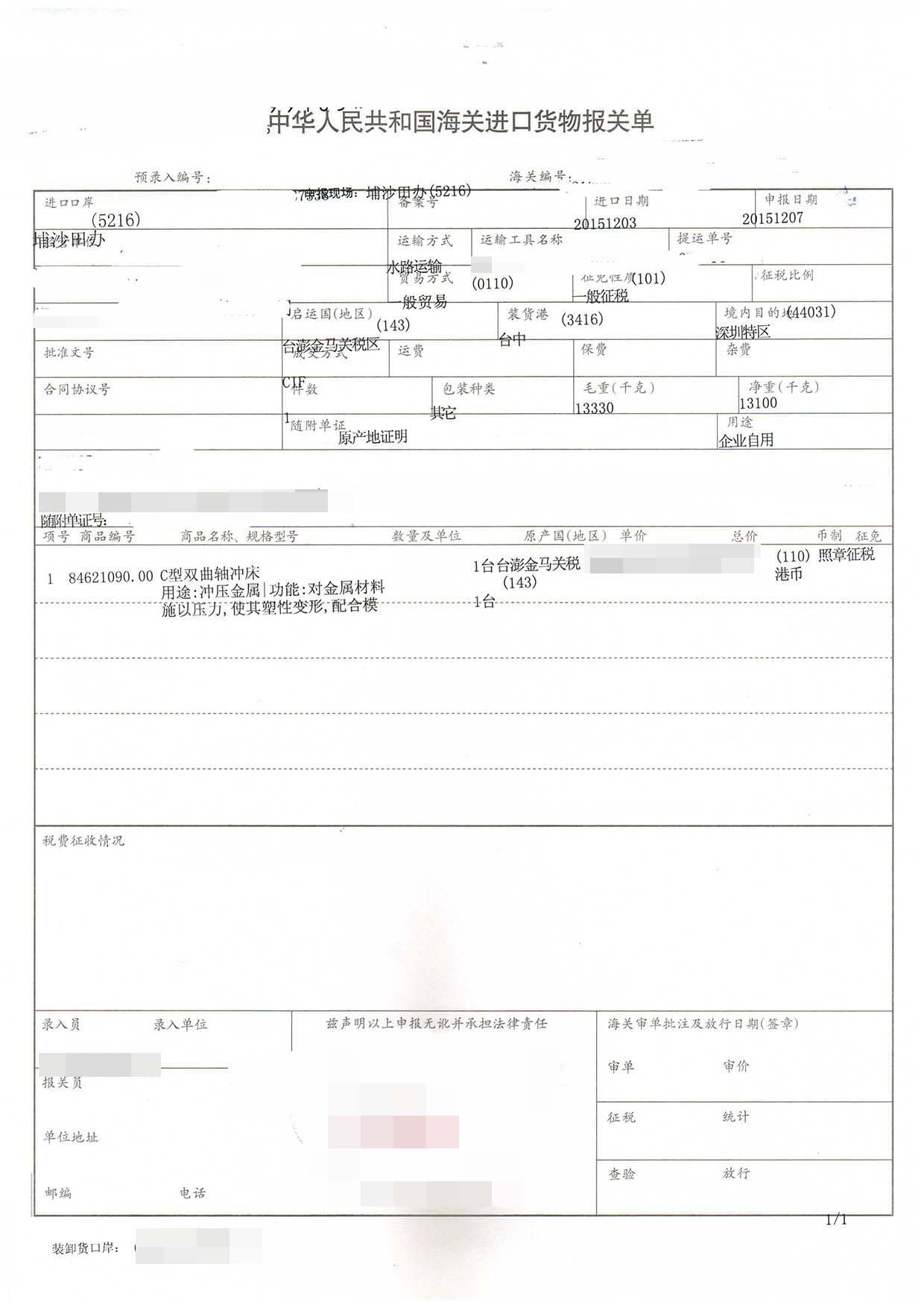 【文章標題】:沖床進口報關手續及案例【建議收藏】 http://m.xkgx.com.cn/lm1/56.html 轉載請注明出處