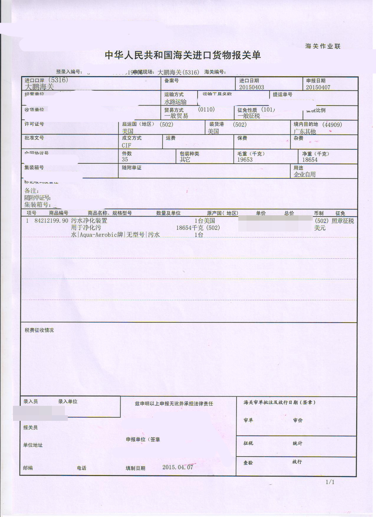 【文章標題】:污水凈化裝置進口報關案例 http://m.xkgx.com.cn/lm5/108.html 轉載請注明出處