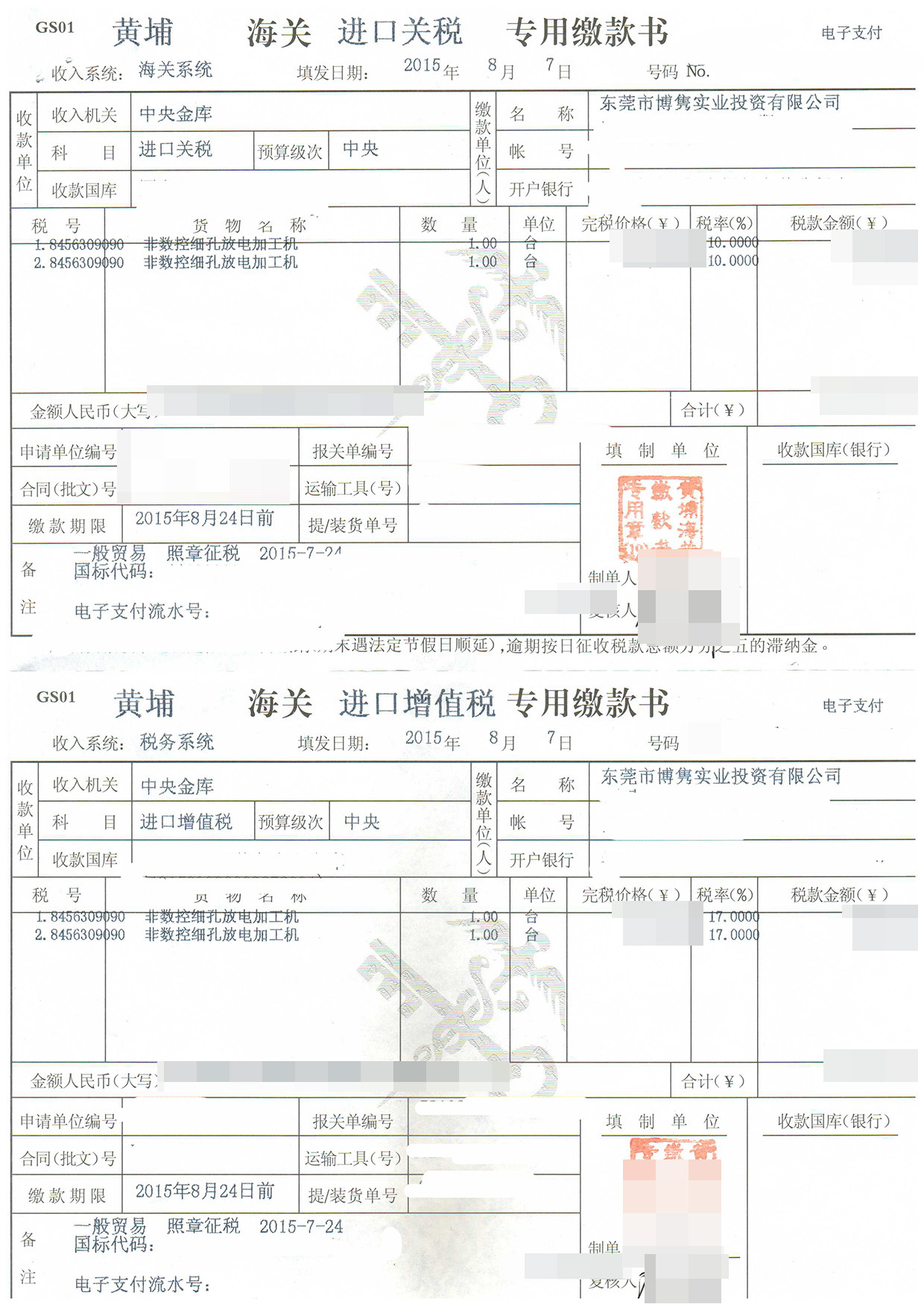 操作貨物:非數(shù)控細(xì)孔放電加工機(jī)