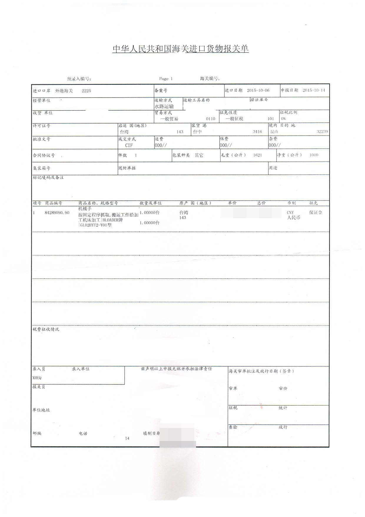 進口日期:2015-10-06