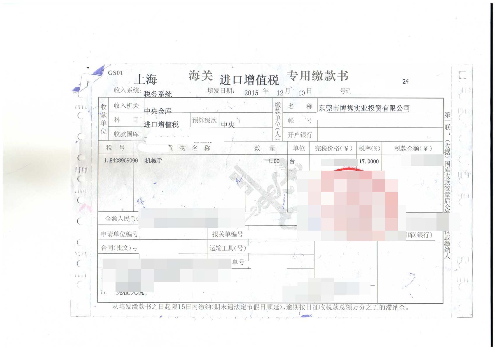 三、機械手進口報關案例展示