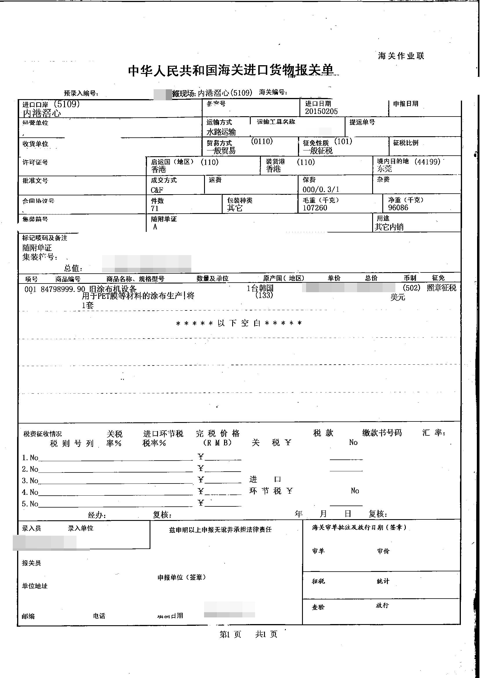 一、舊涂布機設備進口報關手續資料