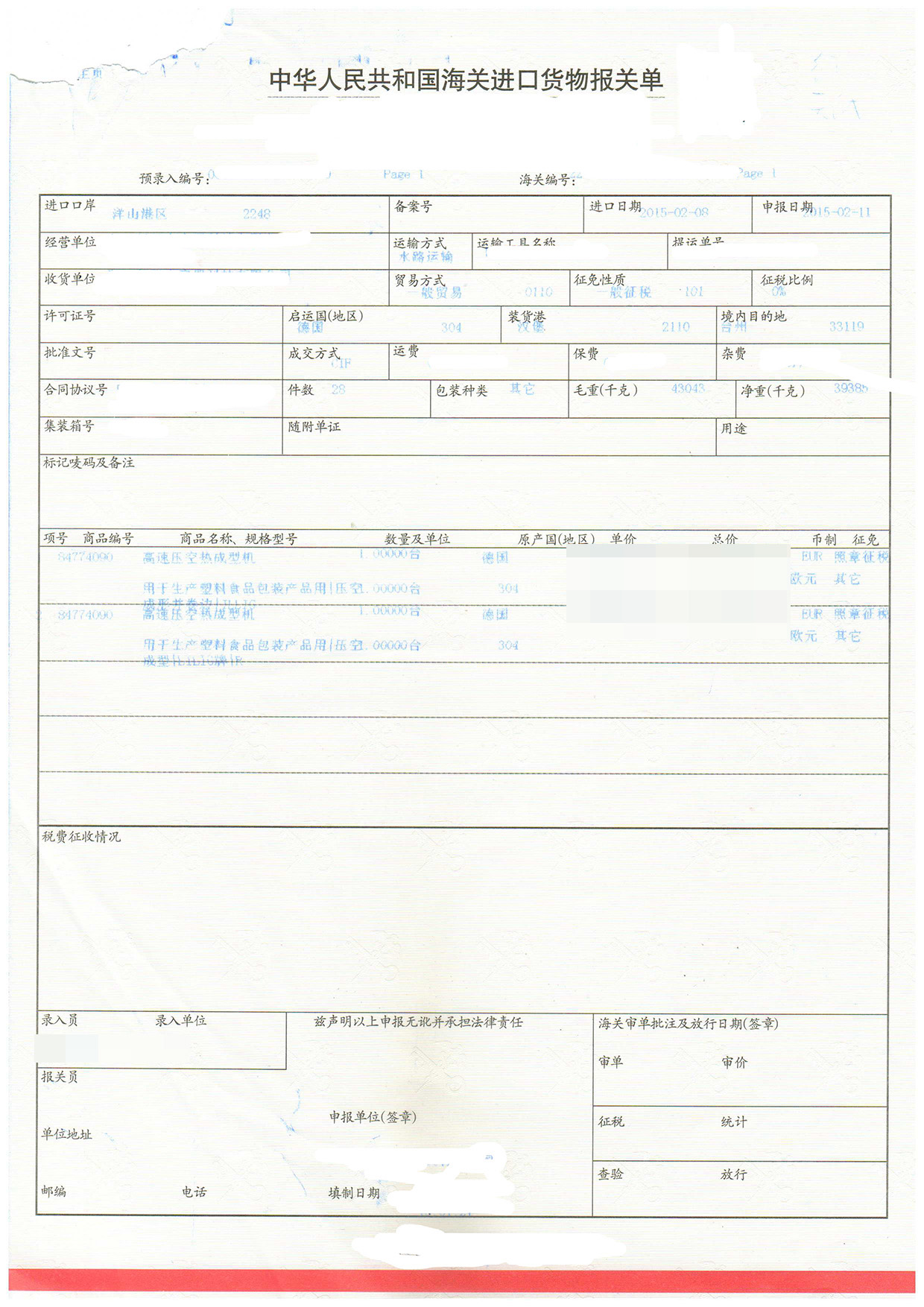 三、熱成型機(jī)進(jìn)口報(bào)關(guān)案例展示