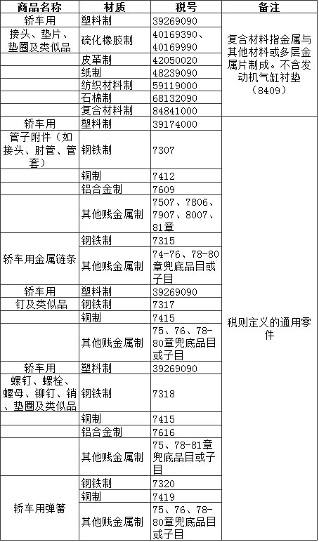 轎車零部件的歸類有其法律依據,那就是非著名的《稅則》十七類注釋二、三。
