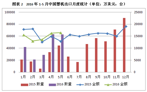 2016年1-5月中國塑料機械進(jìn)出口報關(guān)雙雙下降